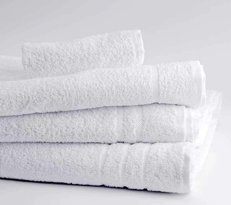 Prisvärd, kraftig och funktionell vit frotté för offentlig miljö med dekorativ bård